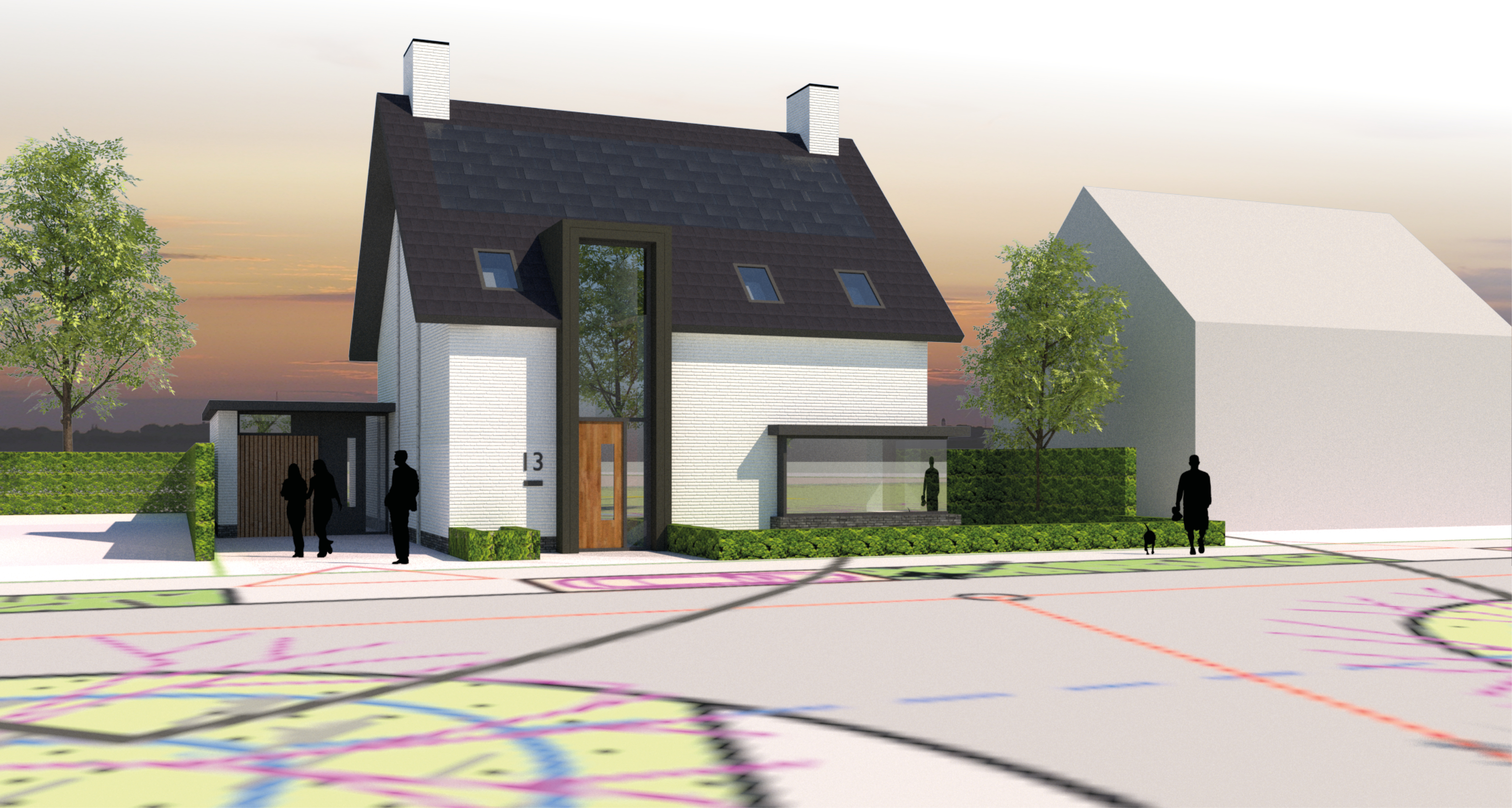 Een complex met commerciële ruimten op de begane grond en in totaal 43 woningen verdeeld over de 3 bouwlagen. We hebben een ontwerp gemaakt dat binnen bestemmingsplan antwoord geeft op zowel de grootstedelijek bouwvolumes aan de Noorzijde als het kleinstedelijke pandjesprincipe aan de Zuidzijde van de locatie.